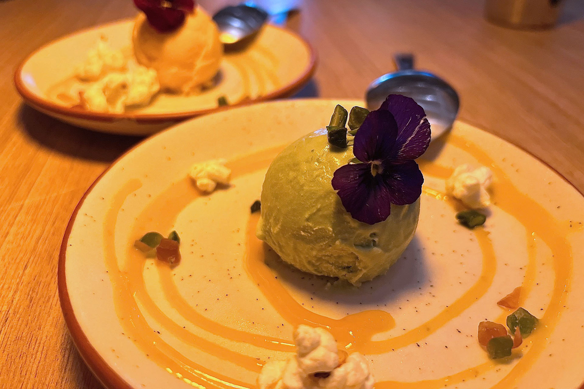 Traditional Indian ice-cream is a cooling way to finish a meal, particularly after a wonderful array of spicy dishes. The earthy nuttiness of the pistachio, along with the tropical zest of the mango work wondrously, both exceedingly creamy and never over-sweet.