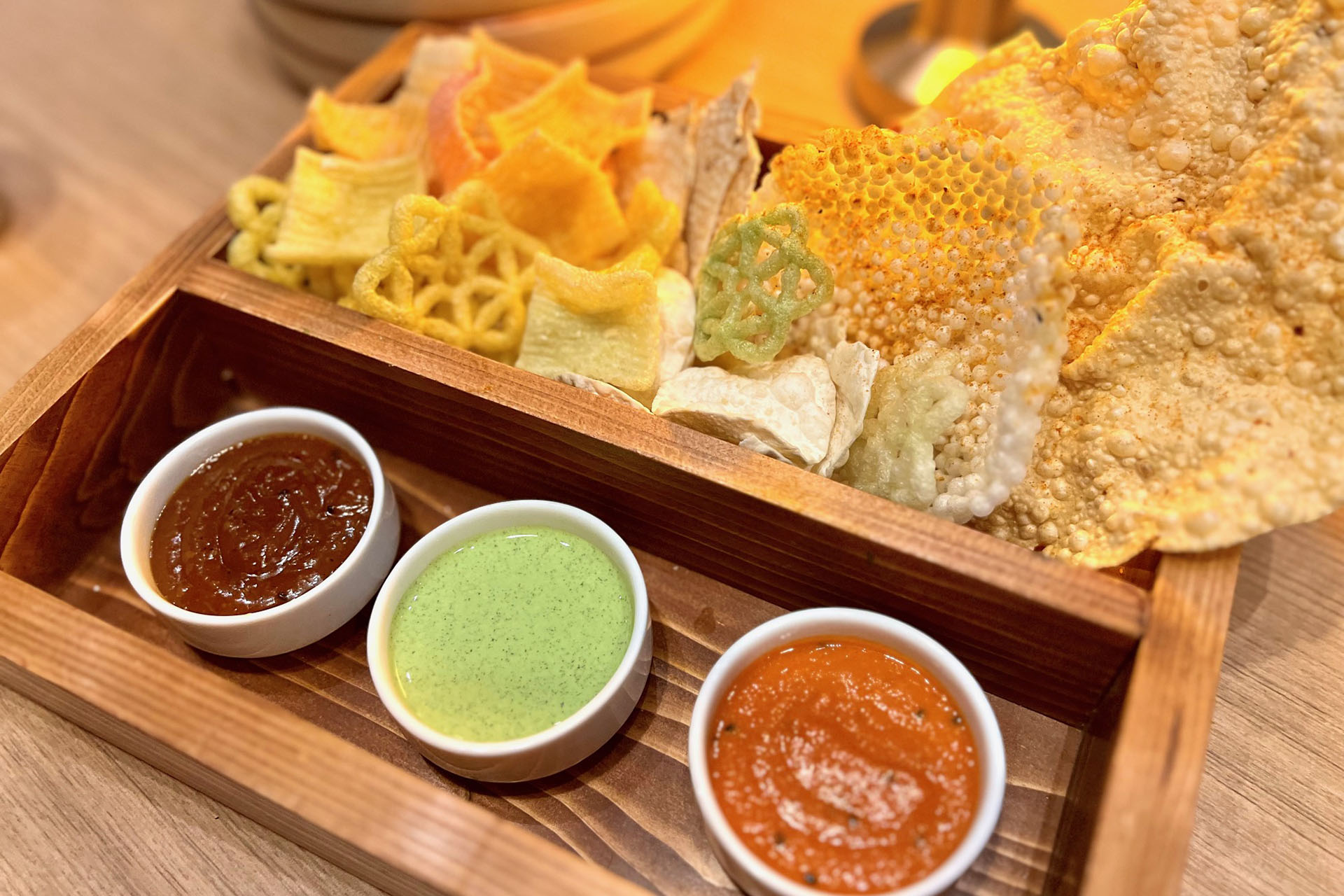 For much-needed nibbles over their delicious spiced Indian lemonade, the generous Papad Basket is a welcome first offering. For one, this is the amplest papad offering we’ve yet to see at a restaurant, complemented by a selection of appetizing homemade chutneys. There wasn’t a crumb left…
