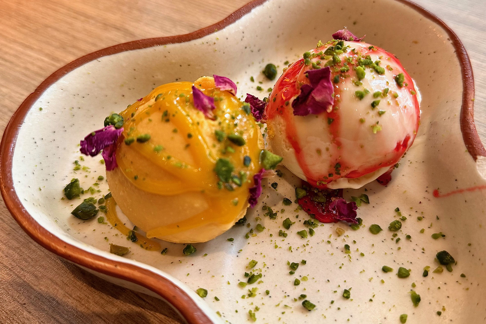 The Malai has that divine milky creaminess that is both sweet and comforting and is enhanced with the sprinkling of chopped pistachios, while the Mango is bright, zesty and almost sorbet-like in its freshness.